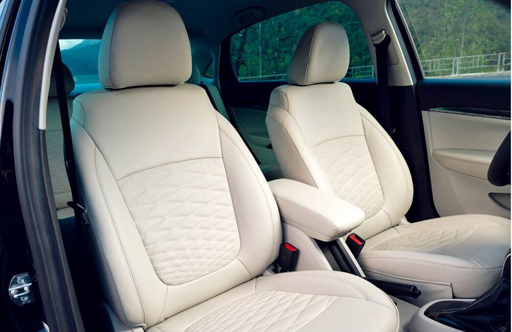 • Обивка сидений натуральной кожей. Цвет (по выбору) черный или серый